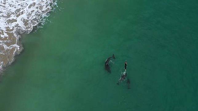 Video berenangnya Judie Johnson tersebut direkam oleh seorang turis Australia bernama Dylan Brayshaw.